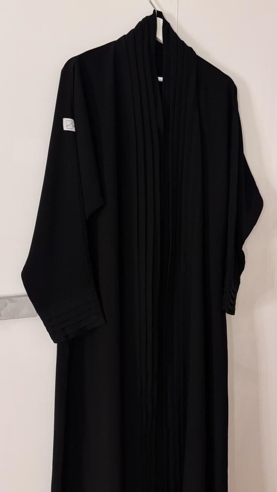 عباية بقصة كلوش من قماش الكريب الملكي فاحم السواد وخفيف القوام (بارد) غير حار المرفقات: طرحة اسود سادة بلوقو